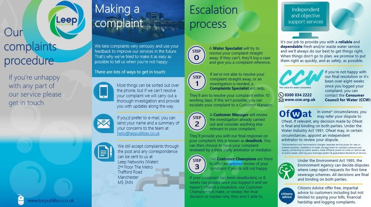 If you’ve got a complaint, you can log it by calling us on 0300 373 3540 or by emailing the team directly at hello@leeputilities.co.uk